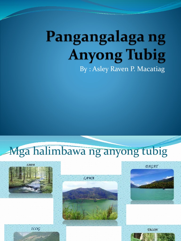 What is a Body of Water. Human translations with examples. Ang mga ilog dagat talon batis sapa lawa ay ilan lamang sa mga anyong tubig na dapat nating pangalagaan hanggat maari dapat wag natin itong abusuhin wag natin itong itong tapunan ng kahit anong klaseng basura gaya ng mga plastic lata basyo ng bote patay n hayop at dapat ang mga gamit n oil ng mga pabrika ay hindi dito tinatapon bilang.