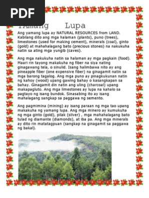 Feb 12 2020 Gumawa ng 2 sanaysay tungkol sa sumusunod na paksang may kinalaman sa Yamang likas sa rehiyon ng asya 1. YAMANG MINERAL Malaki ang mga deposito ng langis at natural gas sa Indonesia. Ang bahagi na kasama ang ilang bahagi ng Timog Asya ay kilala bilang Silangang Indies o sa payak na Indies hanggang noong ika-20 dantaon.