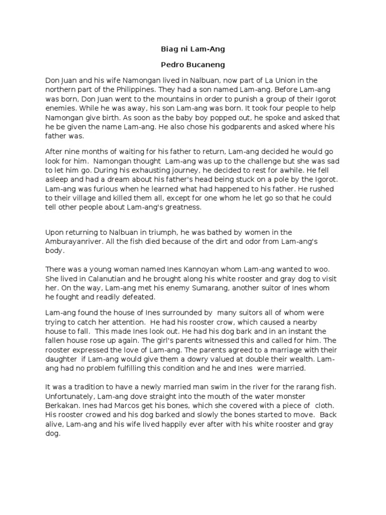 Biag ni Lam-ang English. Philippine literature diverse and rich group works that. Namongan my mother let my name be Lam-ang when you have me baptized.