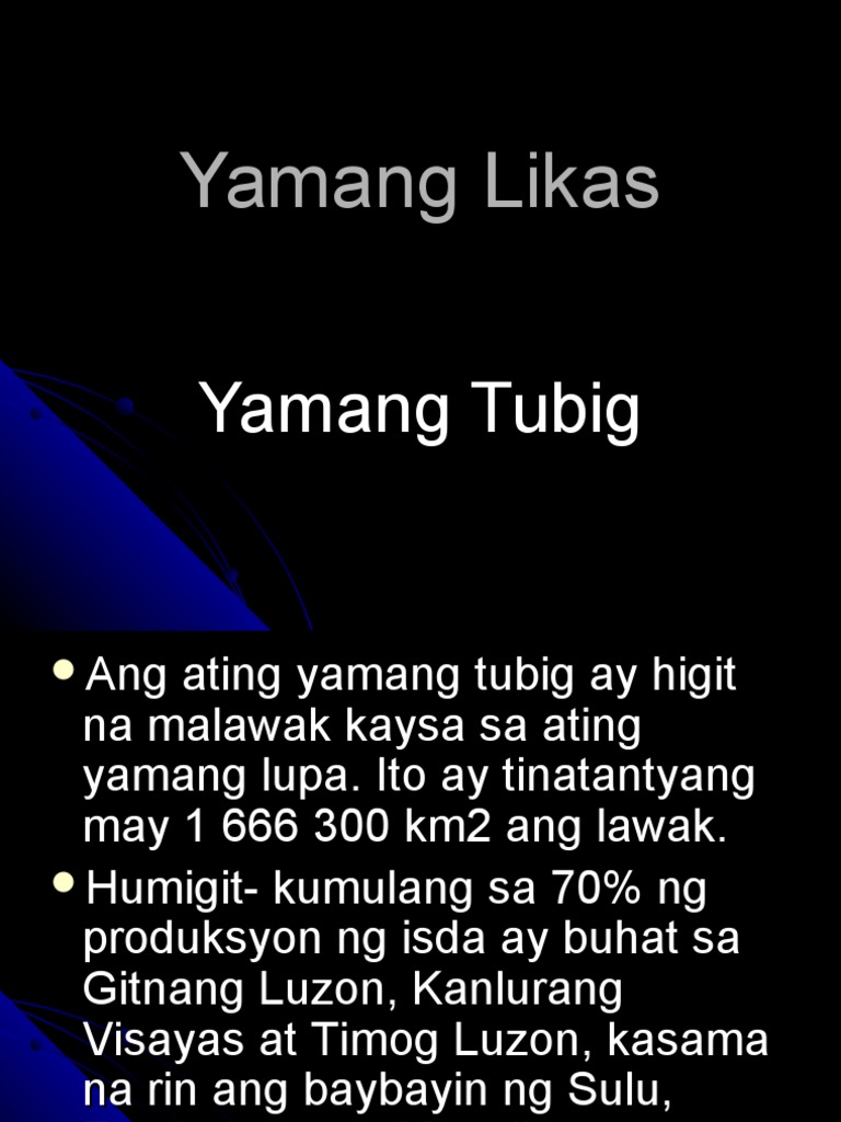 Ang Pilipinas ay sagana sa yamang tubig sapagkat ang Pilipinas ay pinapaligiran ng tubig ngunit dahil sa pag-aabuso ng tao tulad ng paggagamit ng dinamita unti-unting nauubos ang ating mga yamang tubig. Ano ang matinding suliranin ang kakaharapin kapag patuloy ang pagkasira ng lupa from EDUCATION MISC at Caraga State University Butuan. 1 Polusyon - Isa sa pinakamalaking suliranin sa ating bansa ang sanhi nito ang di maayos na pagtatapon ng basura.