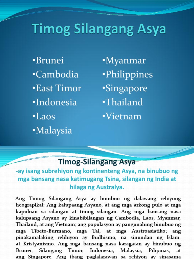 Ito ang may pinakamalaking deposito ng mineral na antimony tungsten ay magnesium sa mundo. Contextual translation of yamang gubat sa timog asya. Anong bansa sa rehiyon ng Timog Silangang Asya matatagpuan ang pinakamaraming puno ng Teak.
